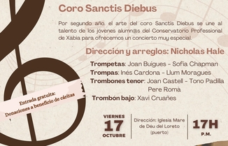 Sobre el cor: Cantaires Sanctis Diebus és un Cor de Cambra fundat en 1977 amb seu a Salisbury (el Regne Unit), dirigit per Nicholas Hale. Especialitzats en música sacra del Renaixement, gaudixen especialment interpretant obres i compositors menys coneguts. Des de 2010 visiten regularment la Costa Blanca, oferint concerts a Pedreguer, Orba, Fontilles, Alcalalí, Benimaurell, Xàtiva, Xàbia i Altea.